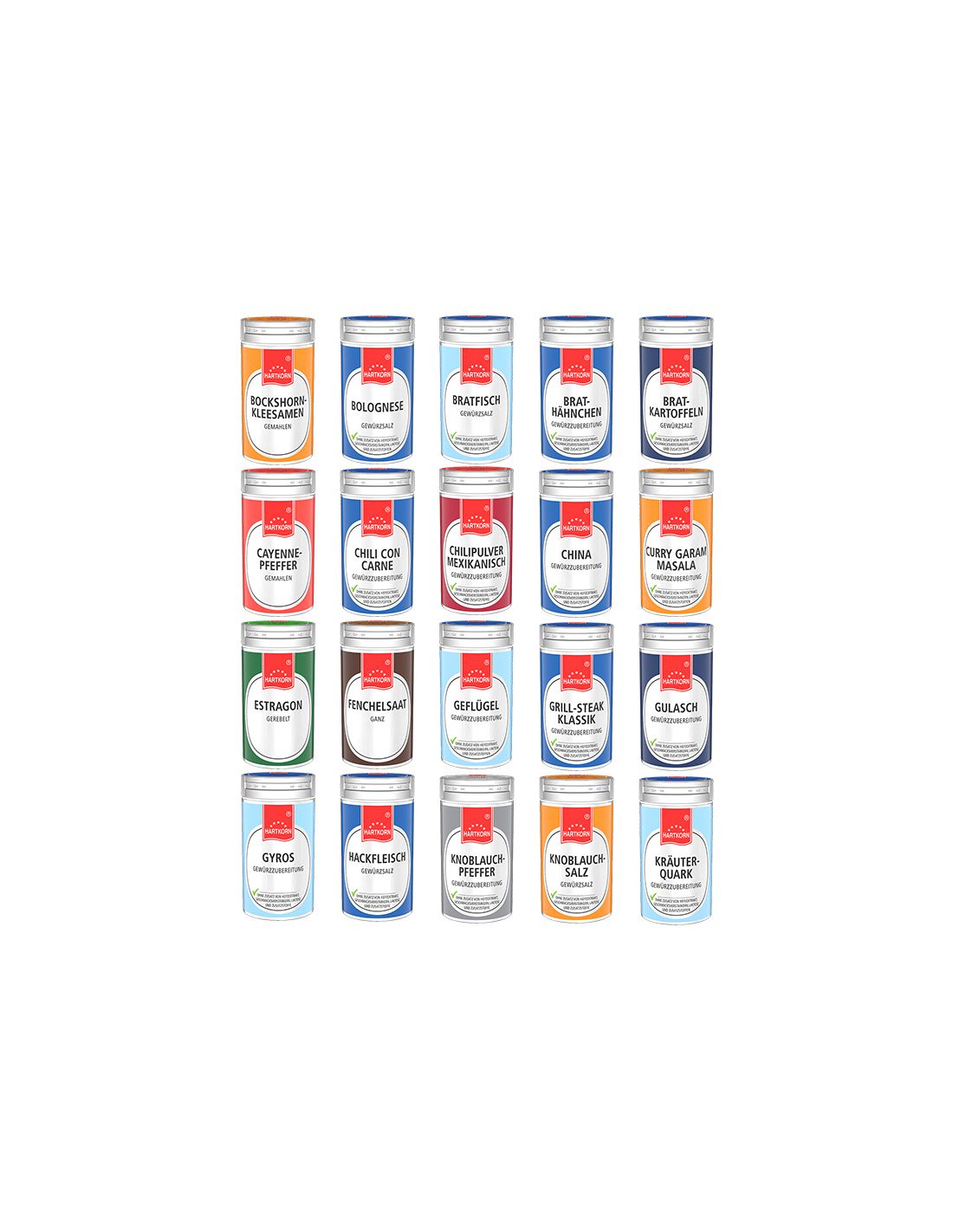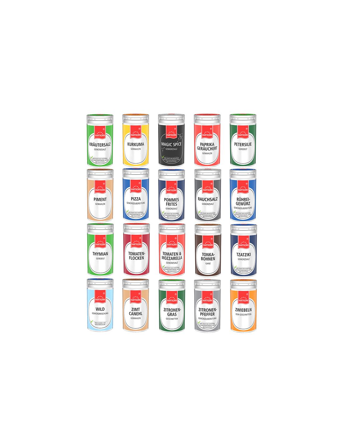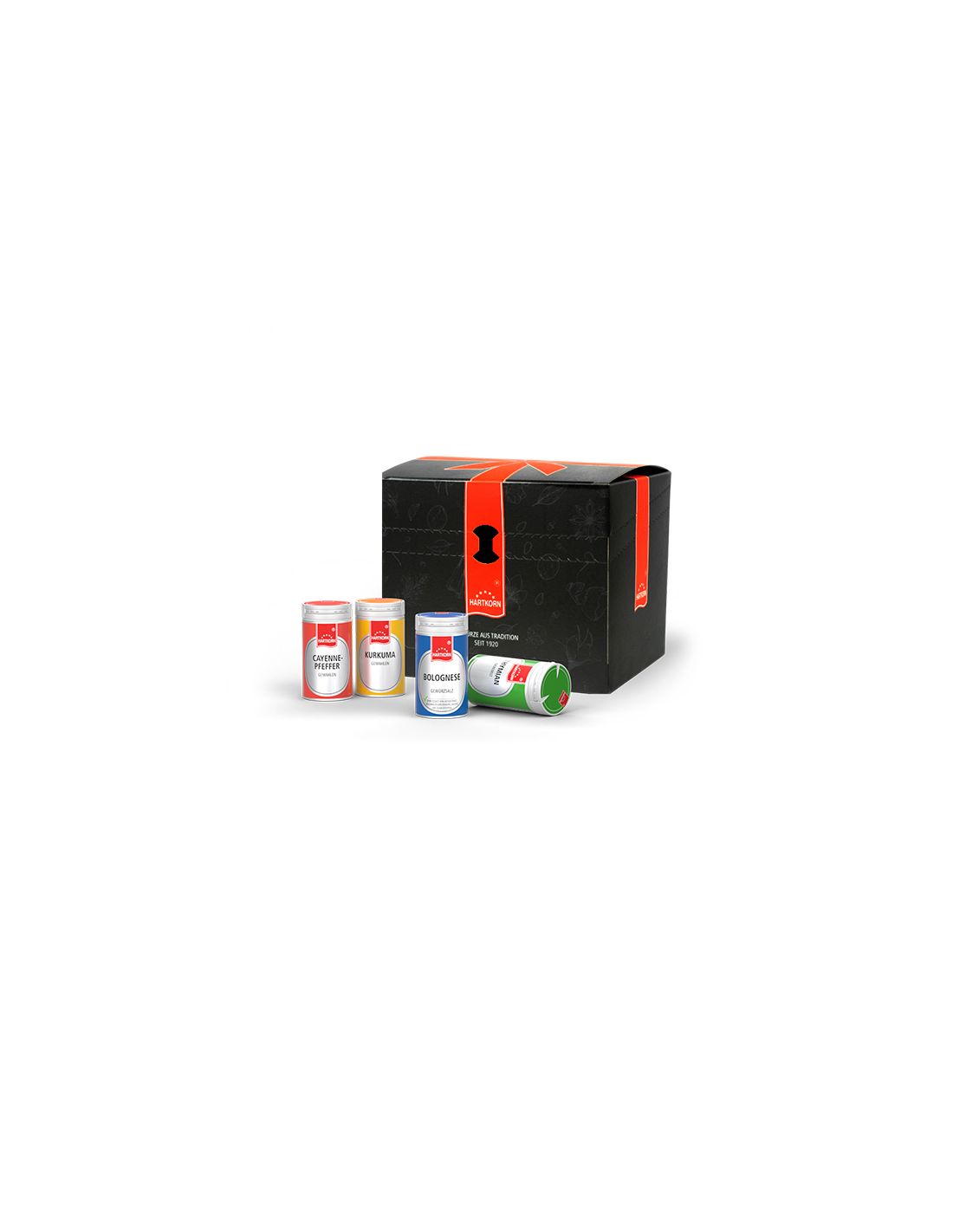 Besitzer unserer Küchenbasics aufgepasst! Mit dieser Gewürzbox erweitert ihr auf einen Schlag euren Gewürzschrank um 40 besondere Gewürzstreuer und sorgt für kulinarischen Facettenreichtum! So bekommst du als Hobbykoch und Kochbegeisterter beispielsweise das beliebte Magic Spice, aromatischen Safran oder süße Tonka Bohne fürs Dessert. In der Hartkorn Geschenkbox eignen sie sich auch super fürs Verschenken!