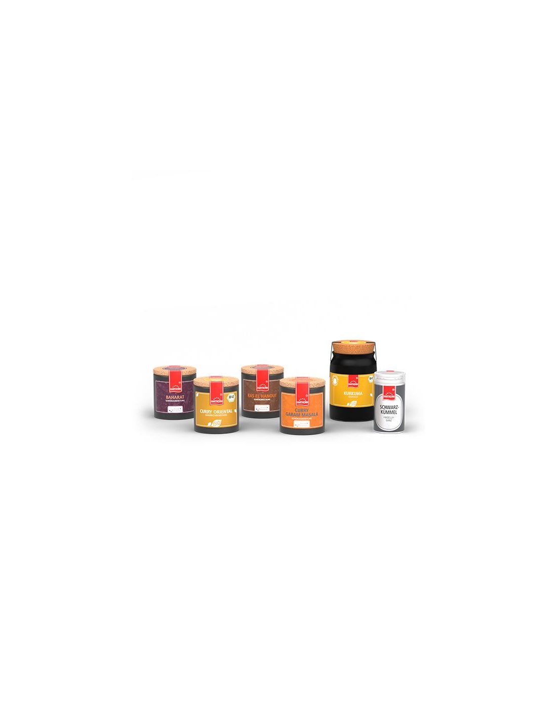Entführt in tausendundeine Nacht wirst du mit diesem Set, bestehend aus Curry Oriental, Schwarzkümmel Nigella, Garam Masala, Kurkuma, Ras el Hanout und dem Hummus Gewürz, dank all der aromatischen orientalischen Gerüche, die sich während des Kochens verbreiten!