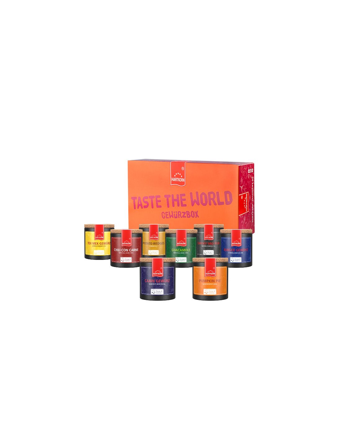 Once around the world and then stop in the land of opportunity: Welcome to the U-S-A. With the Taste the World Spice Box USA, you're embarking on a culinary journey through the flavors of America. And who doesn't immediately think of burgers? Yes, yes, cliché or not... Burgers and the USA are as inseparable as the thought of a nice BBQ. And that will be a real hit with the Young Kitchen BBQ Rub and Seasoning for Potato Wedges. Or try your hand at Pulled Pork - smoker, enough time and especially the Young Kitchen Pulled Pork spice preparation promise a guarantee of success. You can give your friends the perfect Tex-Mex evening with the simple, but just as delicious guacamole in the Hartkorn style and meat marinated in Young Kitchen Tex Mex. And of course, your trip to the USA should not be without a detour to the southern states. With the Young Kitchen Cajun seasoning you land in the heart of Louisiana. With this spice preparation, you can make the traditional jambalaya stew in no time. But of course, we can't let you go without the spice for a delicious Pumpkin Pie. So we've also packed the Young Kitchen Pumpkin Pie spice into the chic Taste the World spice box.